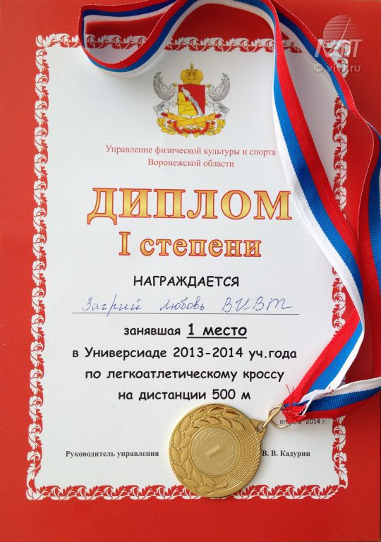 Поздравляем студентку ВИВТ Загрий Любовь, занявшую первое место в легкоатлетическом кроссе.